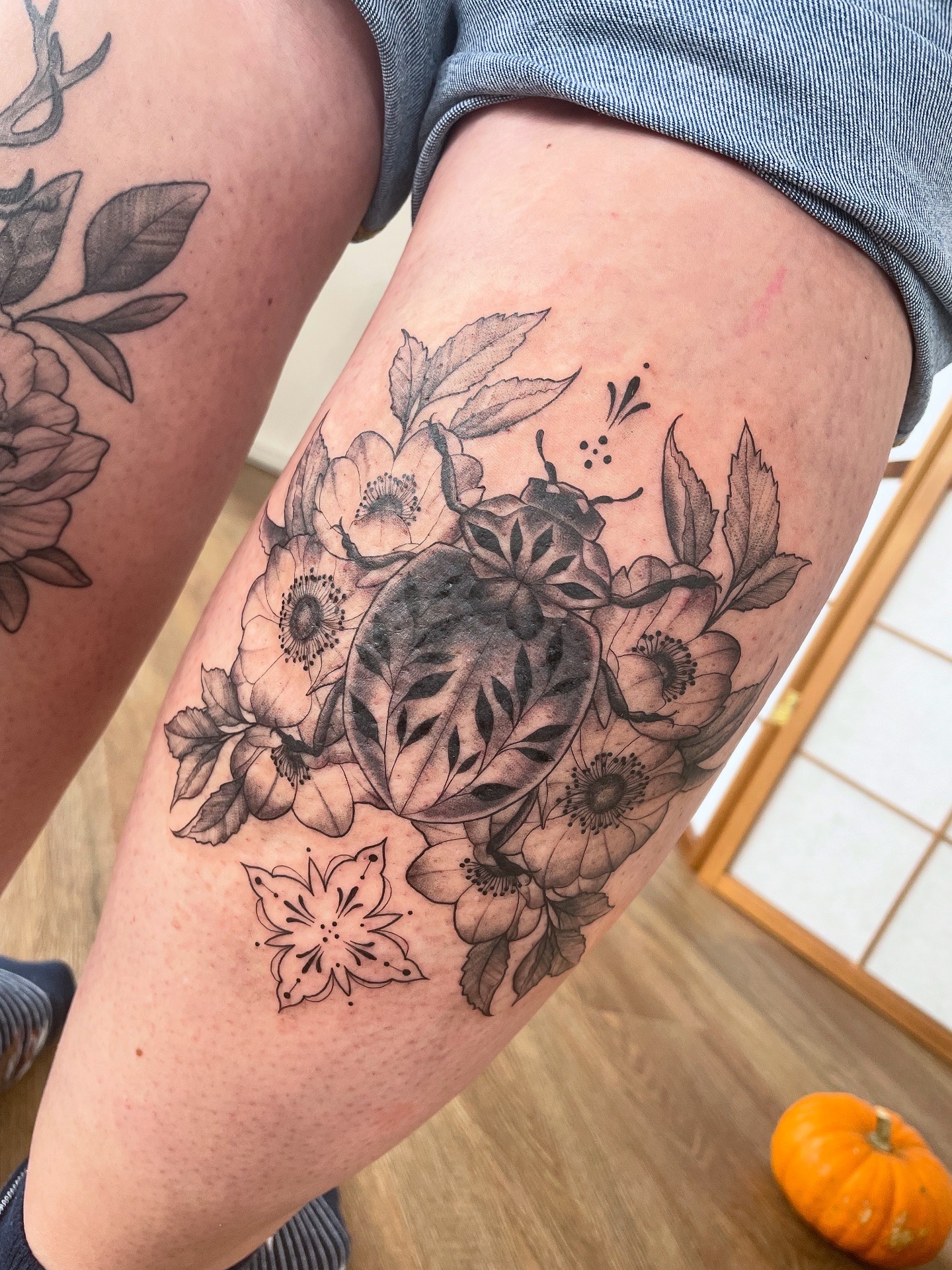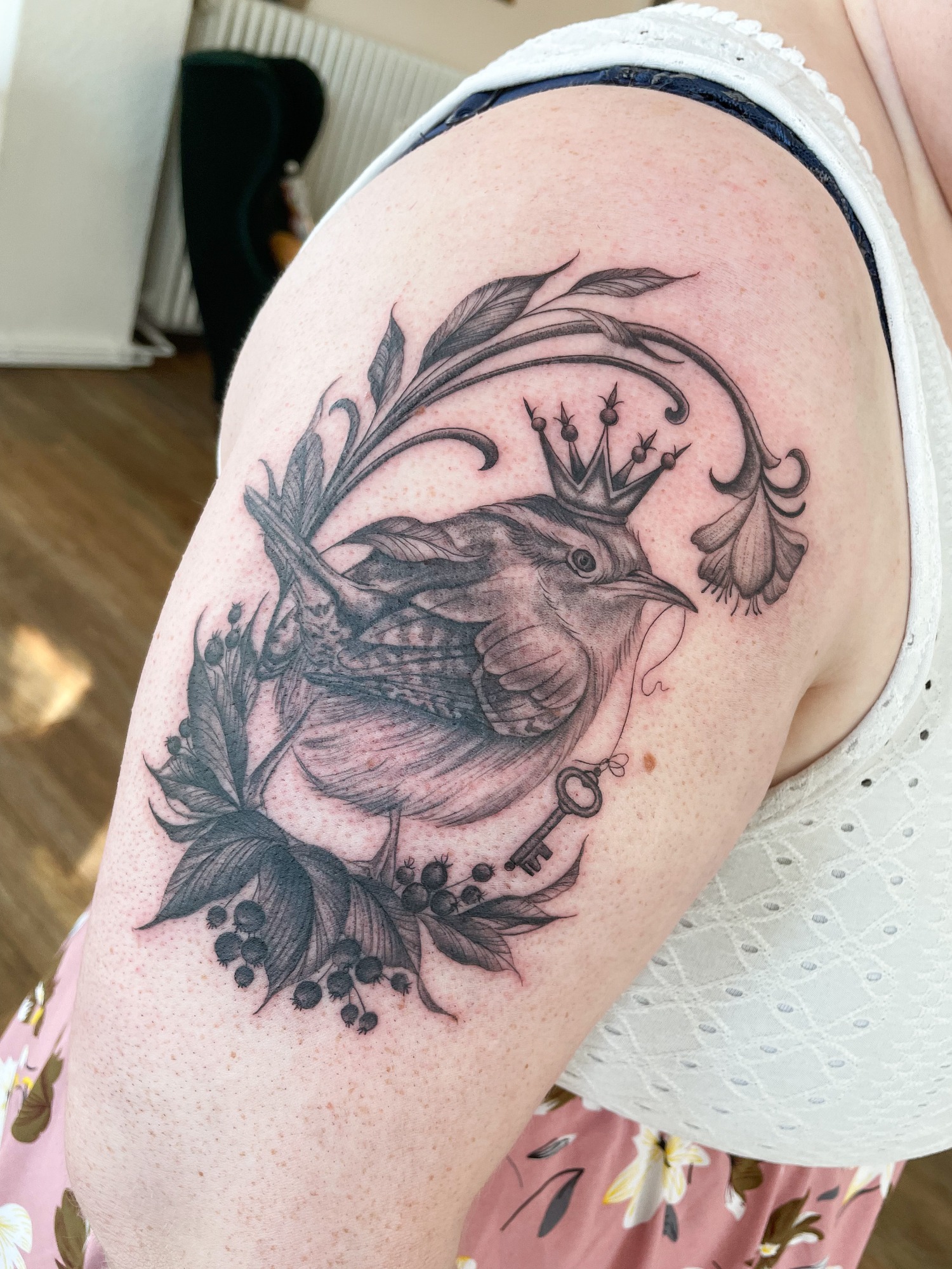 Beeinflusst durch magisch fabelhafte Welten, Kindheitshelden, Okkultismus & Spiritualität, sowie Flora & Fauna entstehen kleine und große Tattoo Träume. Als Norddeutsche Deern erfüllt mich ebenfalls die ganze Sparte an maritimen Motiven, die mit meinem verspielten Feinschliff verziert werden.