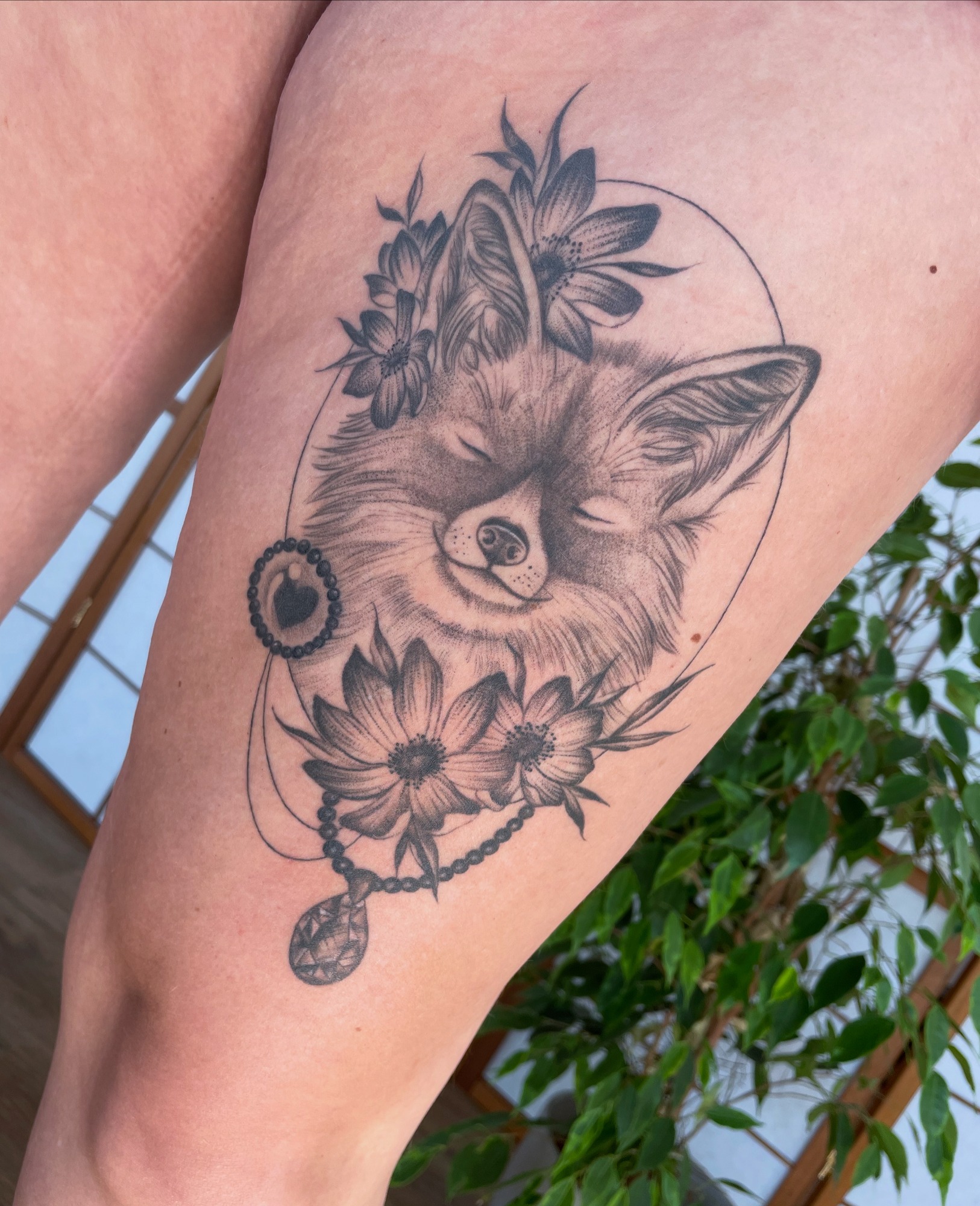 Techniken, die du bei mir findest sind Dotwork, Peppershading, Fineline, Watercolor, Neotraditional, und Semisrealismus.